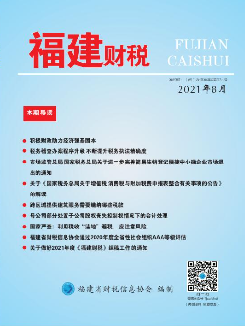 《福建財稅》(準印證:(閩)內資準字K第031號)經(jīng)福建省新聞出版局批準,由福建省財稅信息協(xié)會主辦,為省級連續(xù)性資料性出版物,采用大16開本國際流行印刷,雙月刊,每期約100碼,自2014年編印以來已累計發(fā)行共20多萬冊。