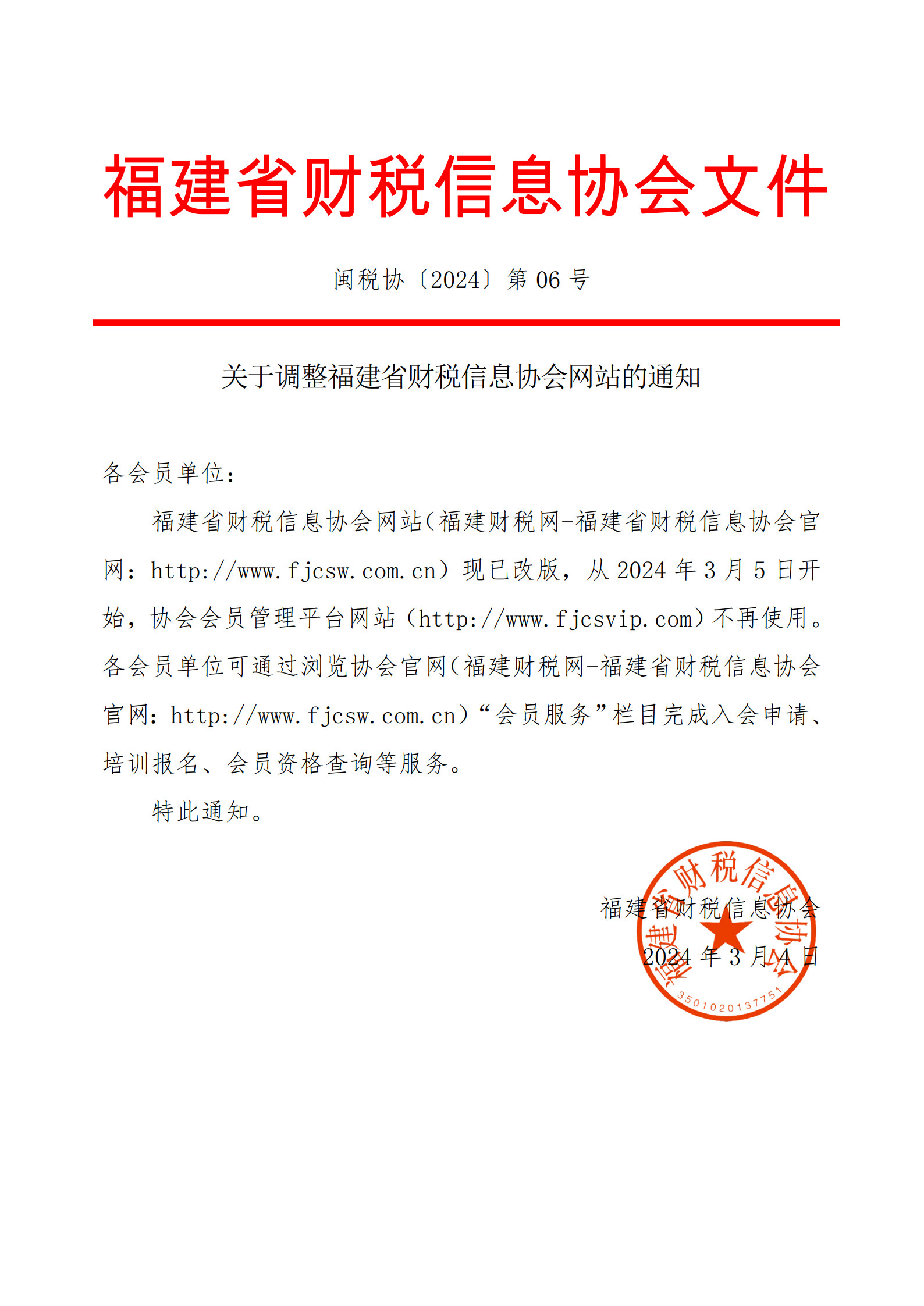 關于調整福建省財稅信息協(xié)會網(wǎng)站的通知