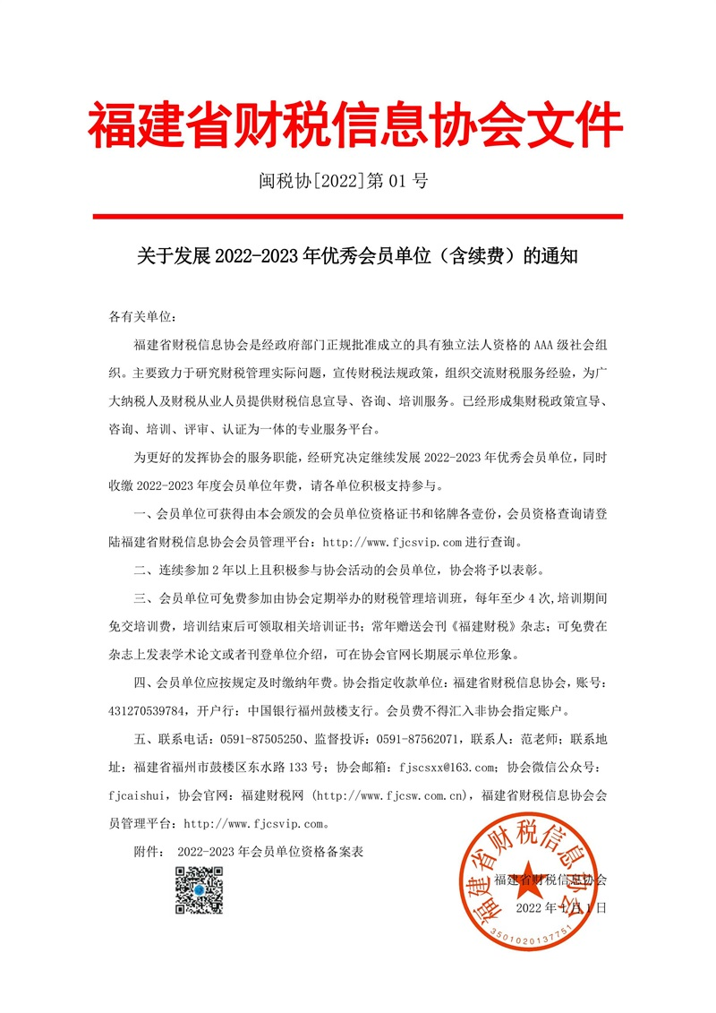 關(guān)于發(fā)展2022-2023年優(yōu)秀會(huì)員單位(含續(xù)費(fèi))的通知