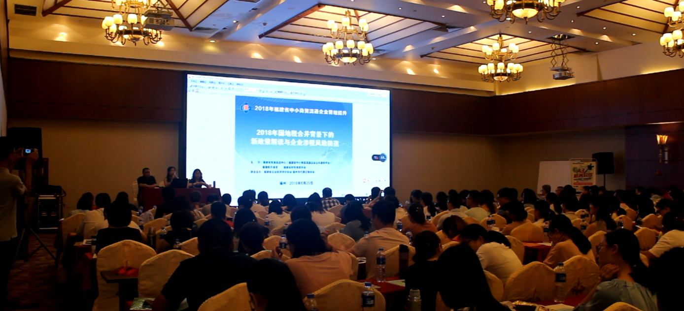 2018年6月29日,根據(jù)福建省商務(wù)廳《關(guān)于舉辦中小商貿(mào)流通企業(yè)管理提升系列活動(dòng)的通知》閩商務(wù)流通【2018】34號(hào)文件有關(guān)規(guī)定,福建省貿(mào)易促進(jìn)中心(福建省中小商貿(mào)流通企業(yè)公共服務(wù)平臺(tái))與福建省財(cái)稅信息協(xié)會(huì)、福建航天信息科技有限公司等單位聯(lián)合主辦的2018年福建省中小商貿(mào)流通企業(yè)管理提升項(xiàng)目暨2018年國地稅合并背景下的最新財(cái)稅政策解讀和企業(yè)涉稅風(fēng)險(xiǎn)防范專題培訓(xùn)在福州成功舉辦。