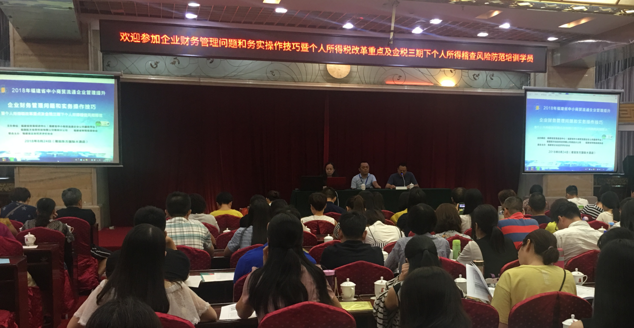 2018年8月24日,由福建省貿(mào)易促進(jìn)中心(福建省中小商貿(mào)流通企業(yè)公共服務(wù)平臺(tái))與福建省財(cái)稅信息協(xié)會(huì)主辦,福建航天信息科技有限公司莆田分公司、福建省企業(yè)經(jīng)濟(jì)評(píng)價(jià)協(xié)會(huì)聯(lián)合主辦的2018年福建省中小商貿(mào)流通企業(yè)管理提升項(xiàng)目之企業(yè)財(cái)務(wù)管理問題和實(shí)務(wù)操作技巧暨個(gè)人所得稅改革重點(diǎn)及個(gè)人所得稽查風(fēng)險(xiǎn)防范專題講座在莆田東方國際大酒店成功舉辦。
